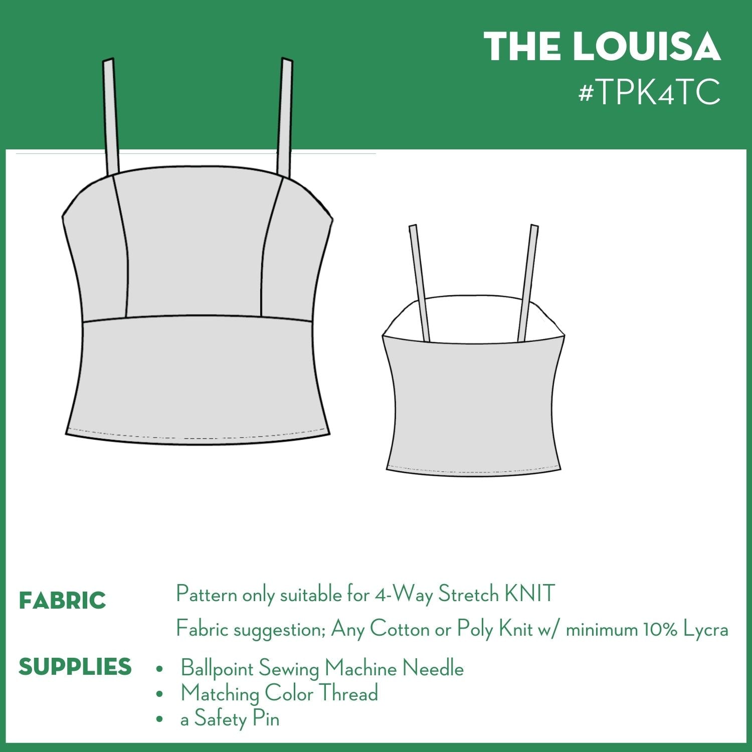 A fitted flattering camisole, shaped by the four panels on the front. The straps can be adjusted to the user's preference. This pattern is only suitable to be sewn with a 4-way stretch knit jersey.