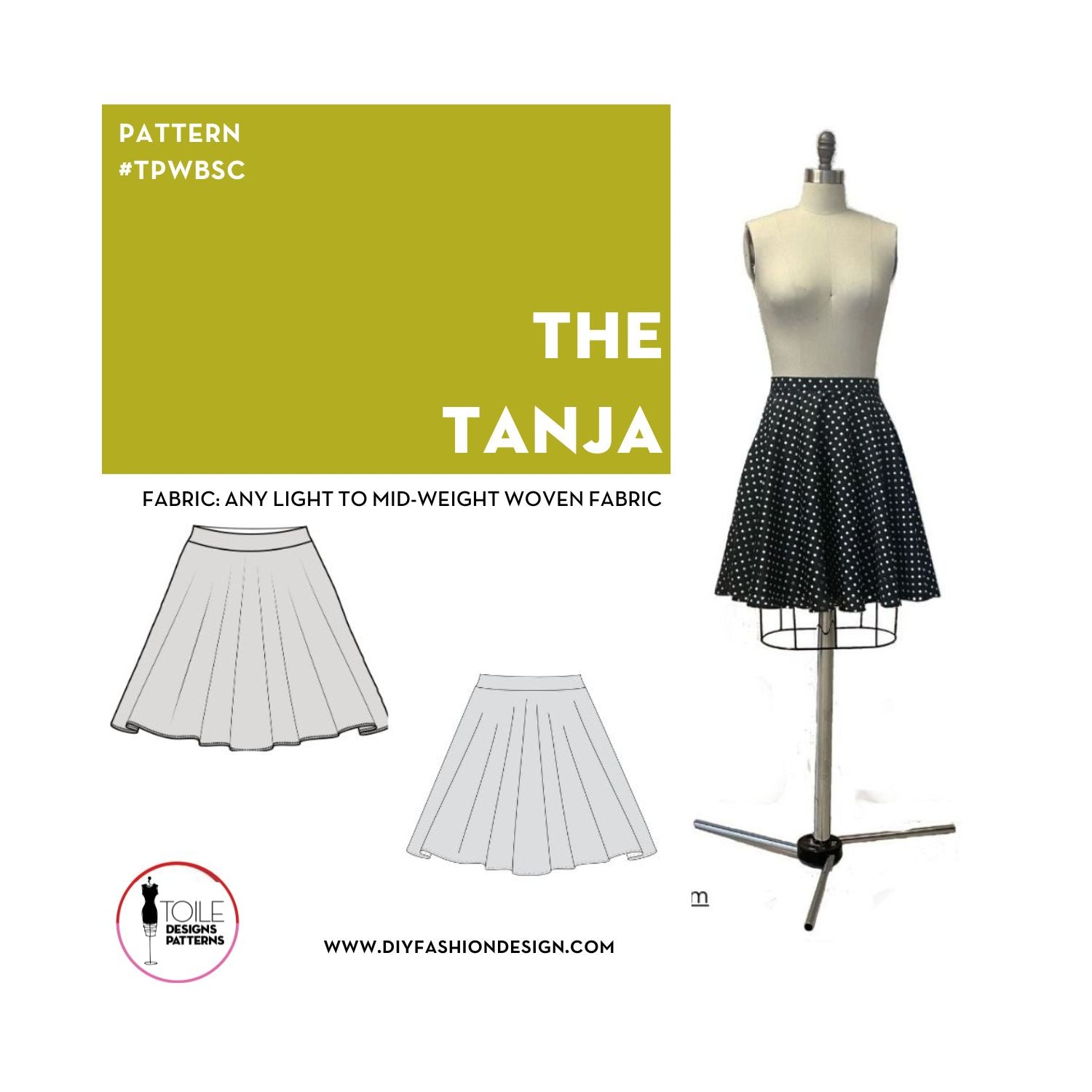 A simple and easy-to-make full-bodied skirt with a waistband, a zipper, and a hidden closure. The circle skirt can be made out of any light to mid-weight fabric but is best made out of a woven fabric.