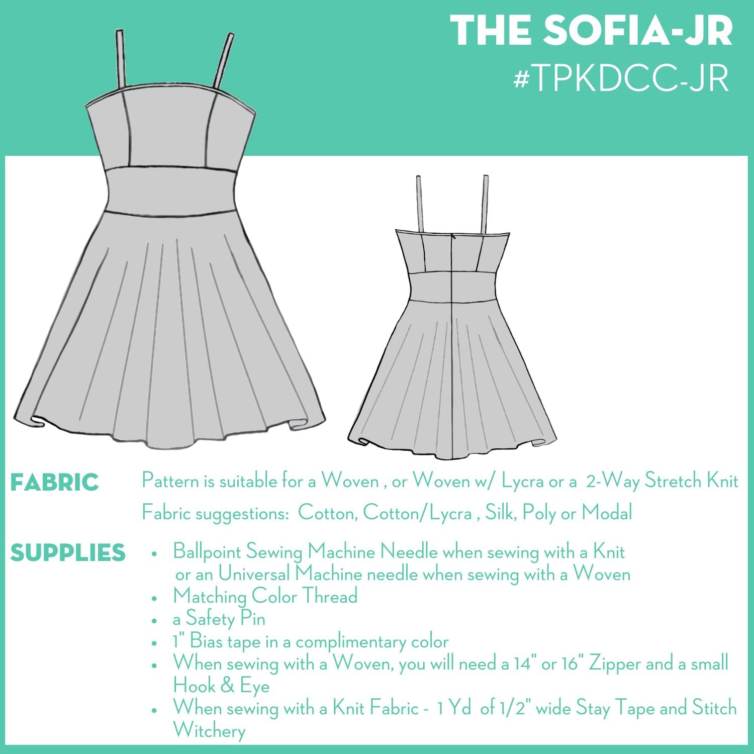 Sweet dress with a fitted camisole-type of top with bias binding finishing, a full skirt and if sewing with a woven, a zipper in the back. dress with mid-riff panel and a full skirt.