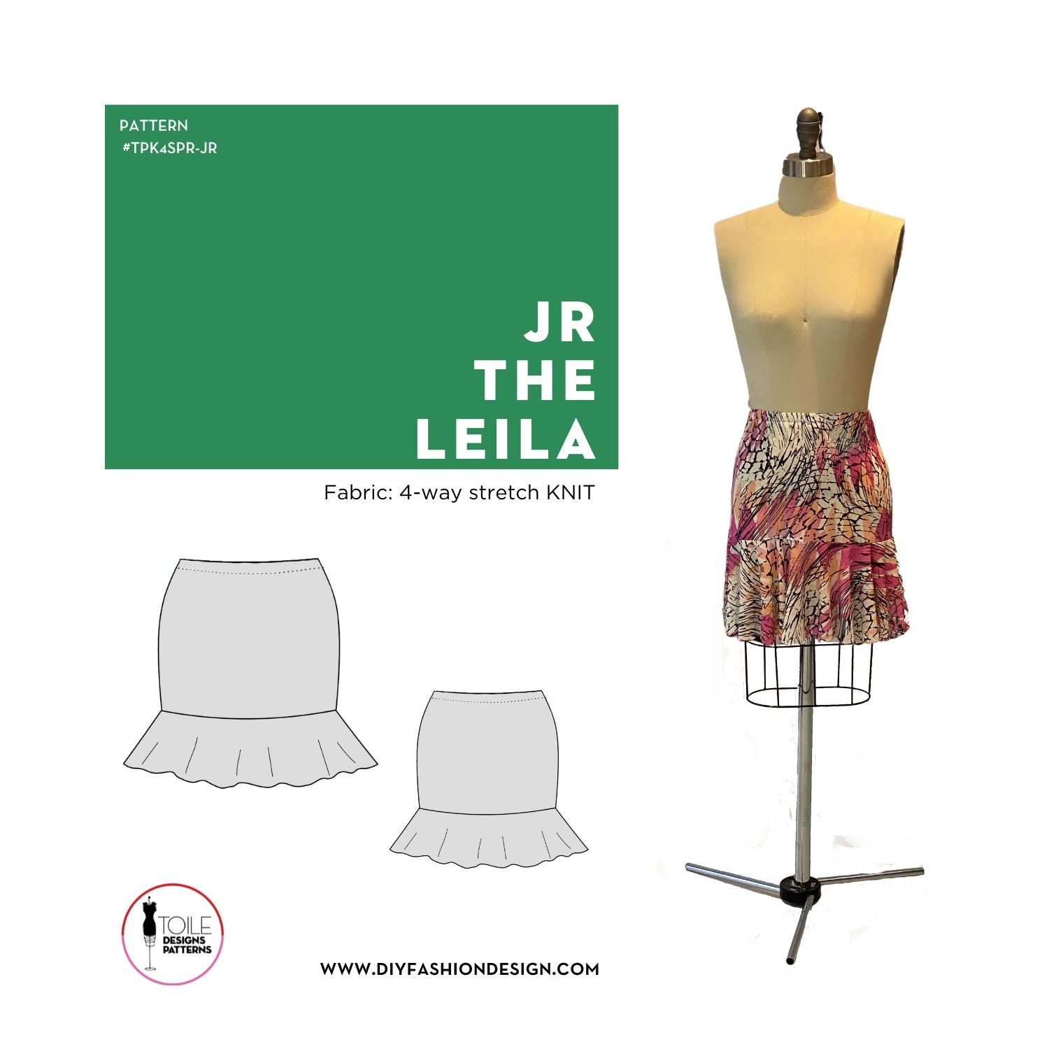 This skirt is best made out of a 4-way Stretch Knit Jersey.