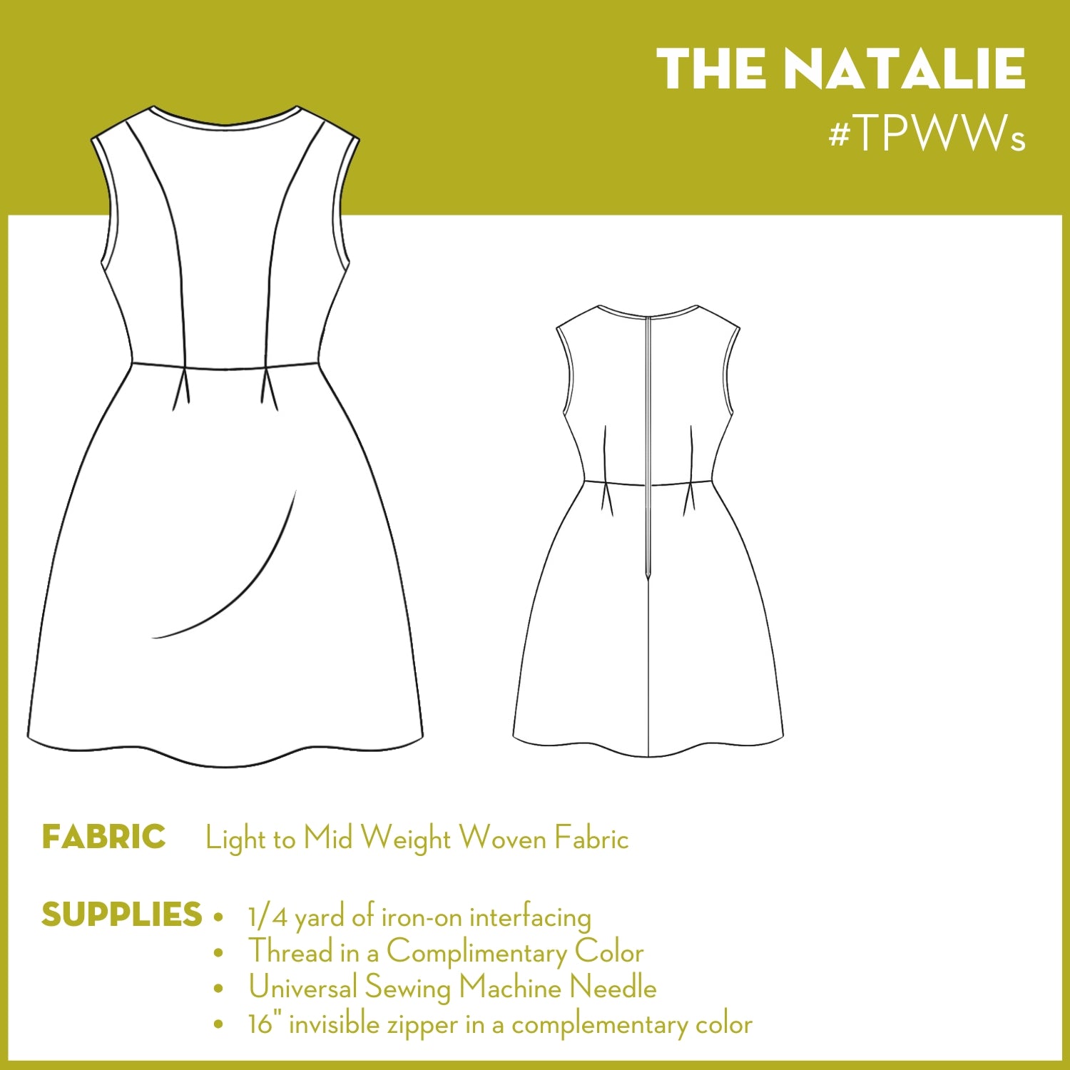 A sleeveless dress with princess seams and a full skirt with kick pleats.