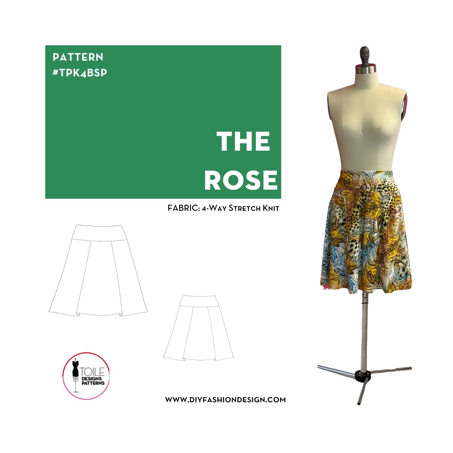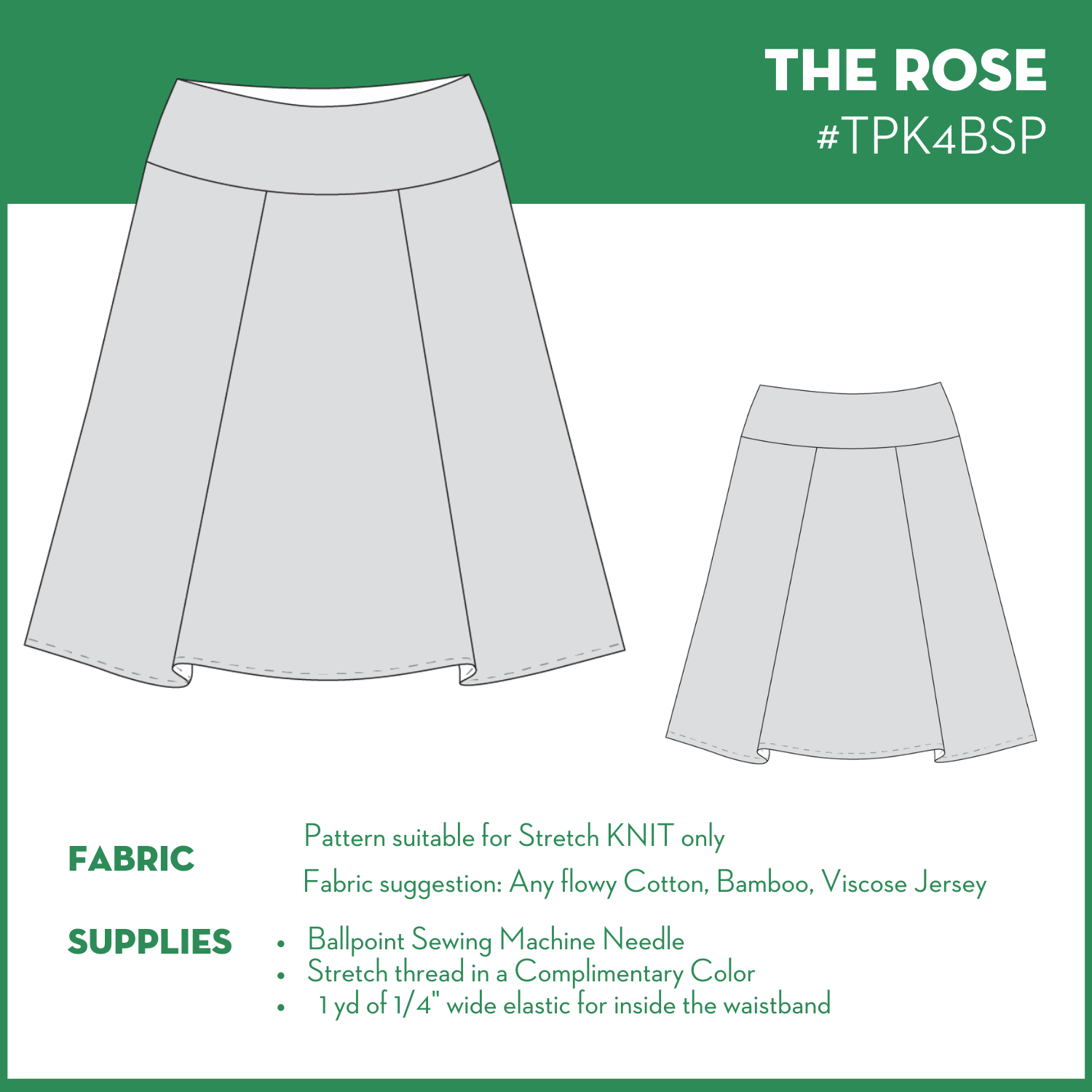 An easy-to-sew flowy skirt, created by 6 panels, 3 on the front and 3 on the back, sewn together with a wide waistband.